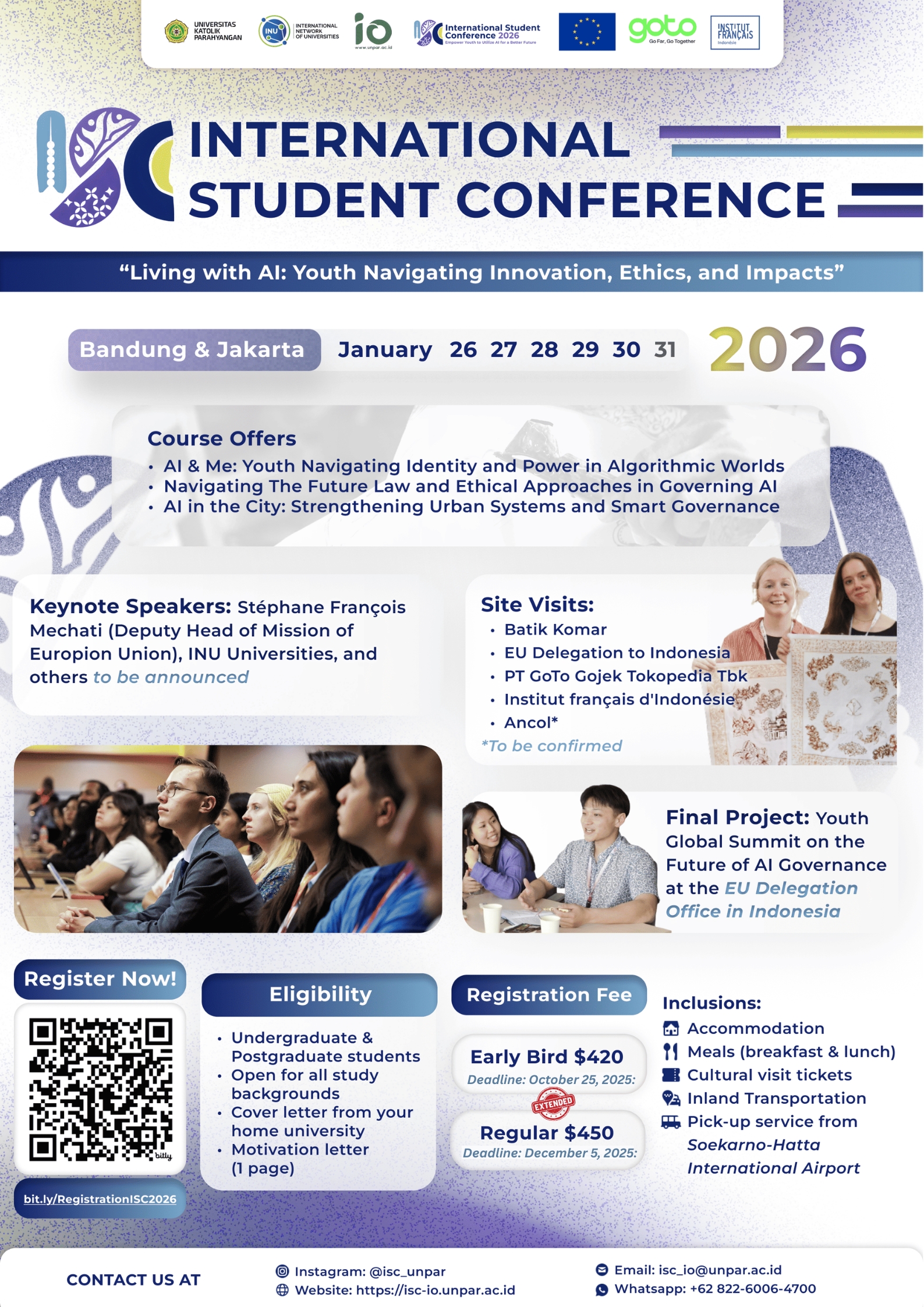 東海大學轉知印尼帕拉希揚天主教大學(Parahyangan Catholic University, UNPAR)舉辦之 2026 年國際學生會議(International Student Conference, ISC 2026) 活動資訊,歡迎有興趣的同學報名參加。