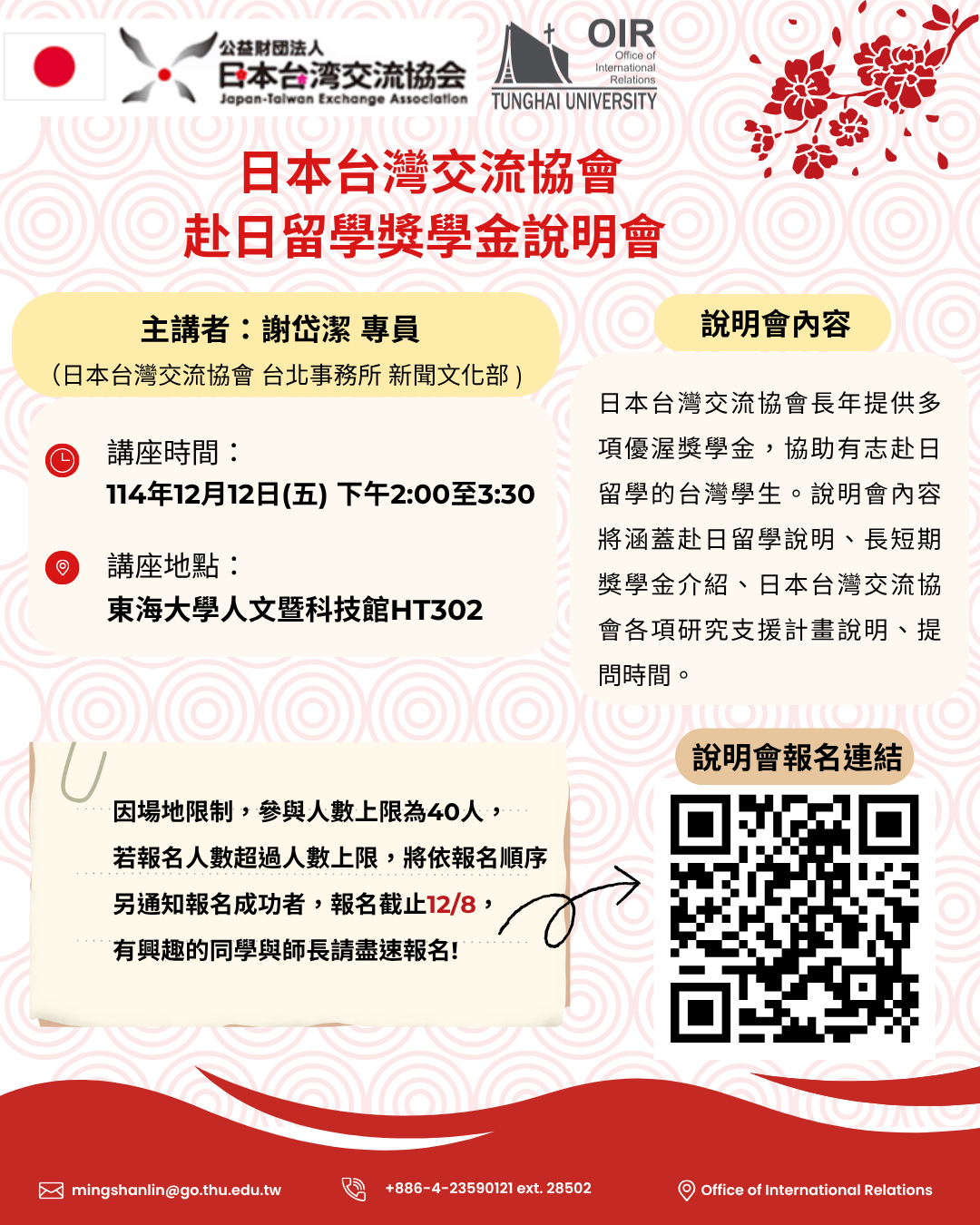 4. 本案聯絡人:林明姍小姐(mingshanlin@go.thu.edu.tw)。